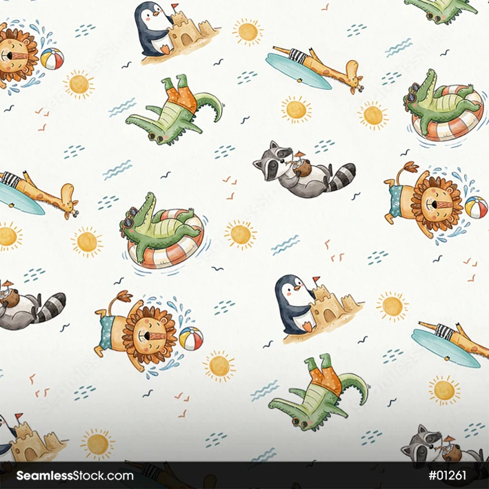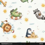 Get ready for the ultimate tropical bash with this Animals On Summer Party Seamless Pattern! 🦁🌴 This vibrant design features a joyful crew of animals—from lions in sunglasses to zebras with beach balls—all celebrating under the sun. It is an ideal choice for summer-themed children’s apparel, birthday party decor, poolside accessories, and festive gift wrap. The bright, energetic colors and playful characters create a sunny and cheerful atmosphere that brings a touch of wild vacation fun to any creative project. ✨☀️