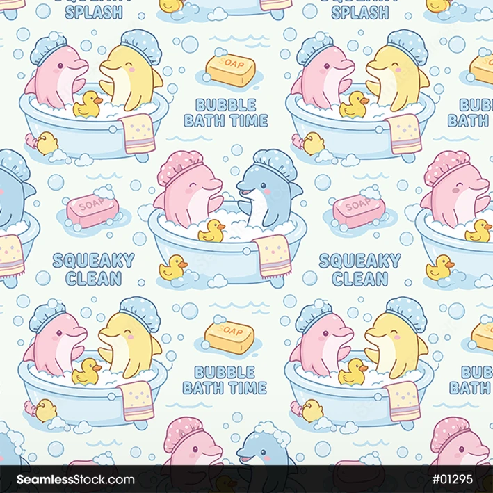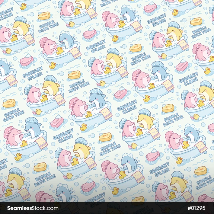 Bring a cute and relaxing vibe to your creations with this Bath Dolphins Seamless Pattern! 🐬🛁 Featuring adorable dolphins in a playful bath theme, it’s perfect for kids’ fabrics, nursery decor, digital papers, and lighthearted designs.
