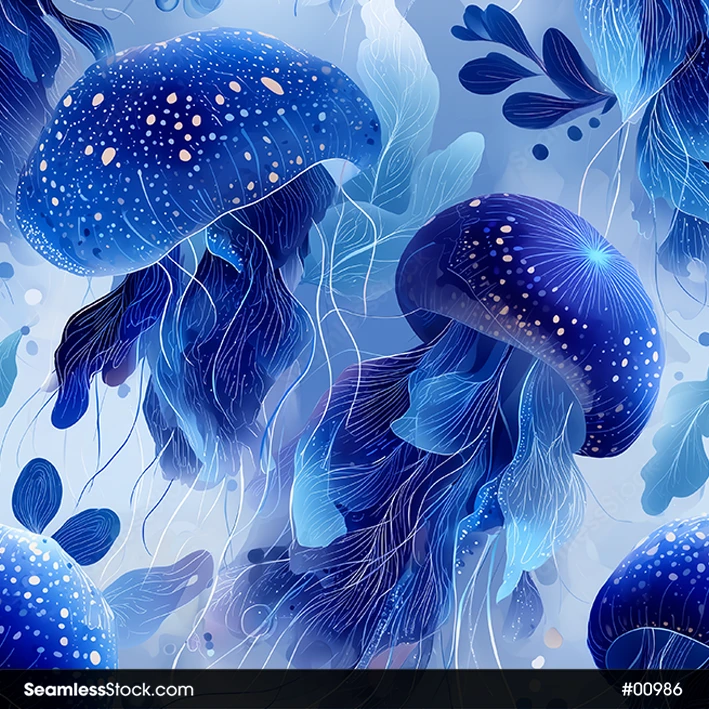 Give your creations a calm ocean touch with this blue jellyfish seamless pattern! 🌌🪼 Perfect for lovers of marine life and dreamy aesthetics.