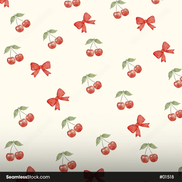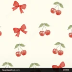 Cherries And Bow Ties Seamless Pattern with cherries and bow ties in a seamless repeat, ideal for fabrics, stationery, wrapping paper, and cute print projects. 🍒🎀