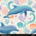 Add a splash of color and happiness with this colorful dolphins on deep sea seamless pattern! 🐬🌊 Great for cheerful and creative ocean-themed creations.