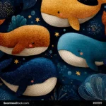 Dive into a playful underwater world with this colorful whales on deep sea seamless pattern! 🐋🌊 Bright, cheerful whales glide through a rich ocean backdrop, perfect for kids’ clothing, sea-themed decor, and fun fabric projects. The deep sea tones make the colors pop while keeping a calm and cozy feel.
