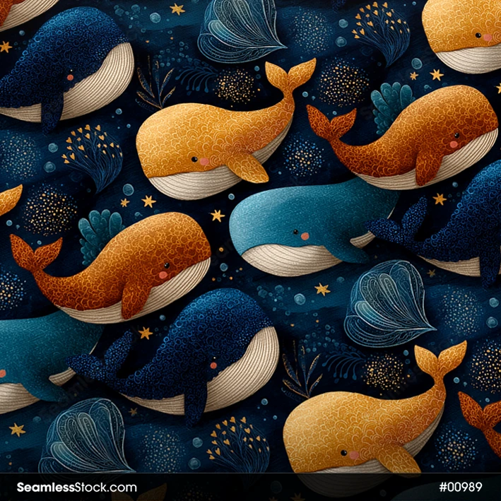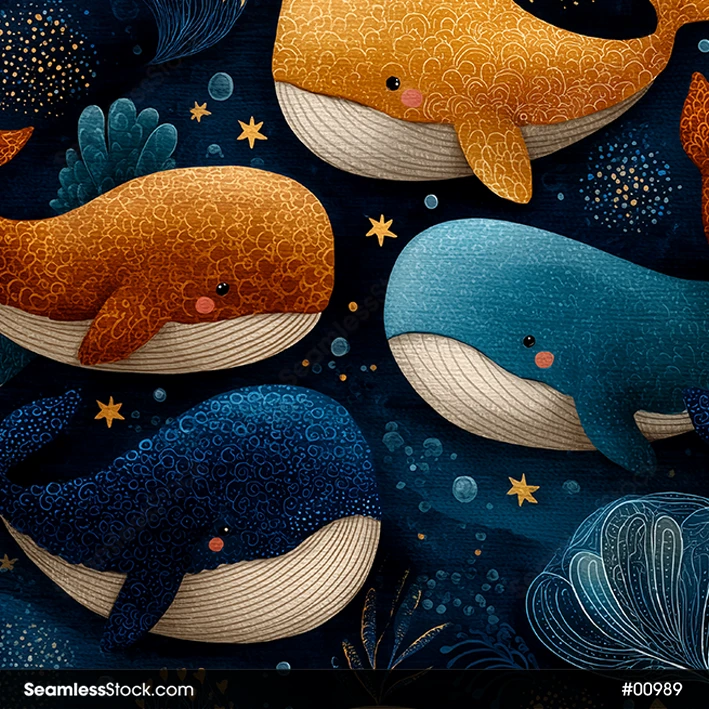 Bring the ocean to life with this colorful whales on deep sea seamless pattern! 🐋💙 Ideal for joyful and creative marine-inspired designs.