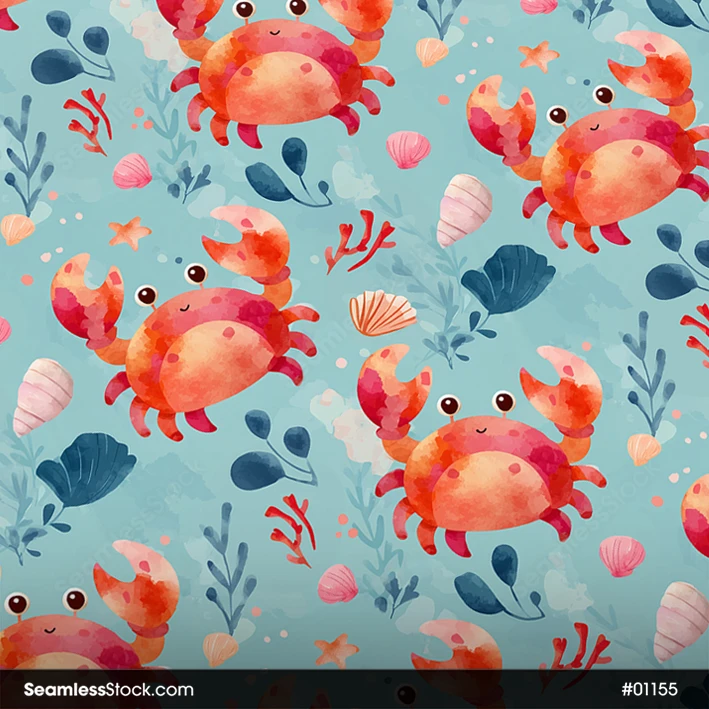 Add a lively aquatic touch to your work with this Cute Crabs On Deep Sea Seamless Pattern! 🦀🌊 Ideal for wrapping paper, summer decor, and digital artwork full of color and character.