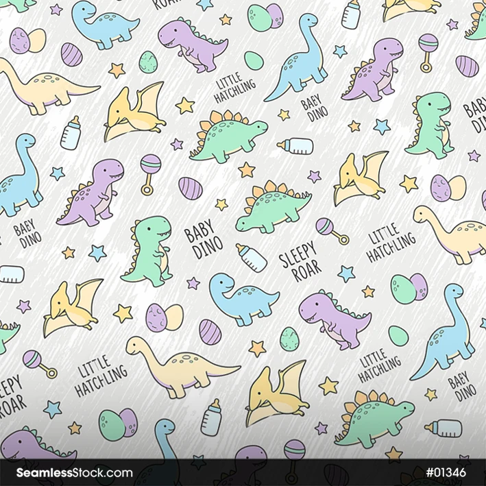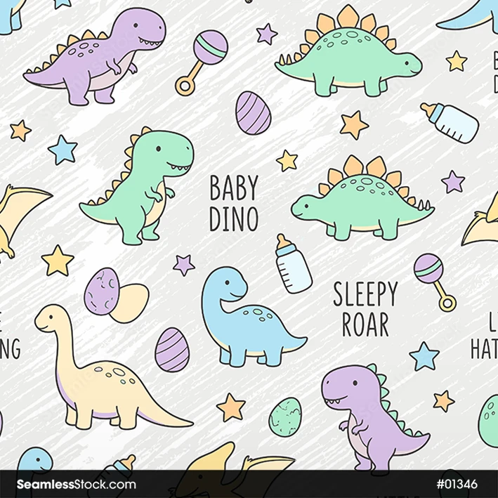 Create playful designs with this cute dinosaurs seamless pattern, perfect for fabrics and wrapping paper, ideal for kids projects. 🦖🦕