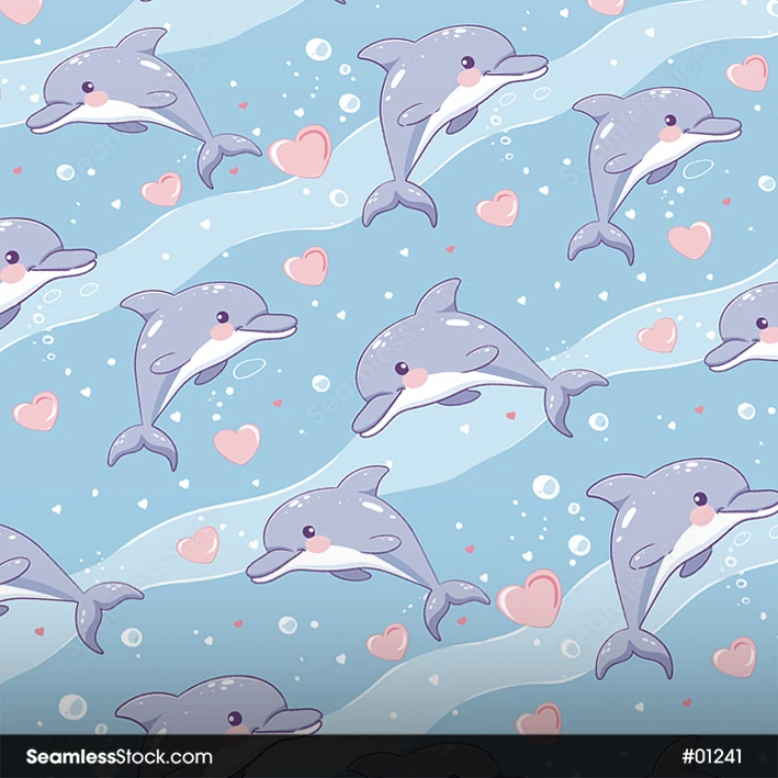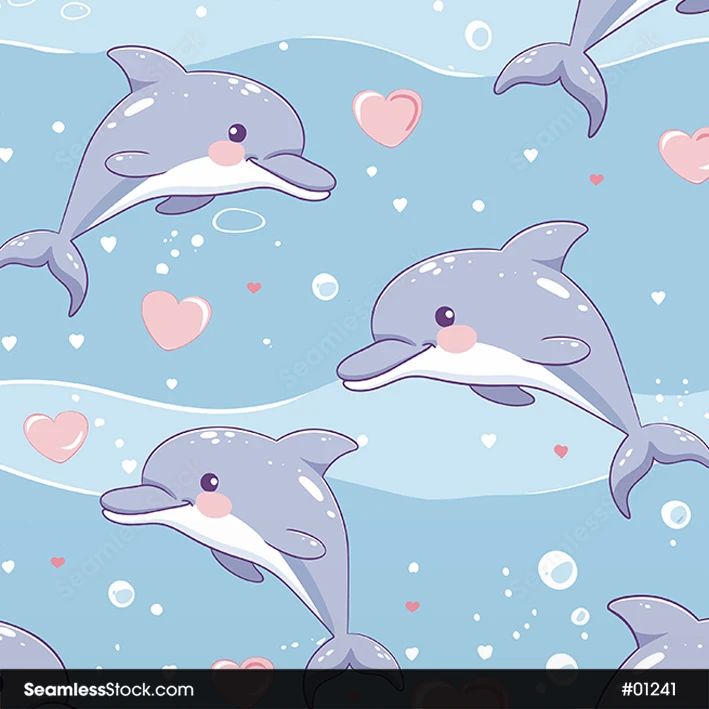 Add a splash of sweetness to your work with this Cute Dolphins And Hearts Seamless Pattern! Perfect for nursery decor and romantic fabrics. 🐬💕