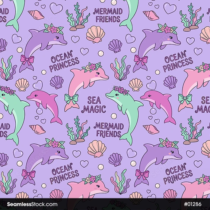 Cute dolphins seamless pattern made for kids products, fabrics, wallpapers and playful prints. Clean seamless repeat in high resolution, easy to use on clothing, accessories, stationery and home decor. Ideal for print on demand, digital projects and colorful collections with a friendly ocean vibe that feels fun and soft. 🐬🌊