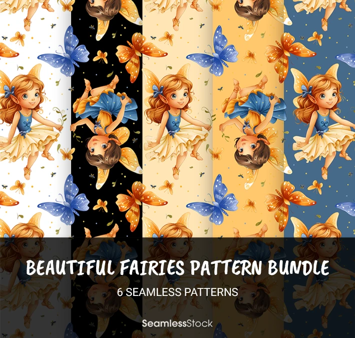 Enhance your projects with the Cute Fairies And Leaves Pattern Pack, including 6 seamless patterns that bring fantasy and creativity to your designs. β¨πΈπ
