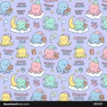 Create cheerful designs with this cute octopuses seamless pattern, perfect for fabrics and wrapping paper, ideal for kids projects and playful themes. 🐙💖