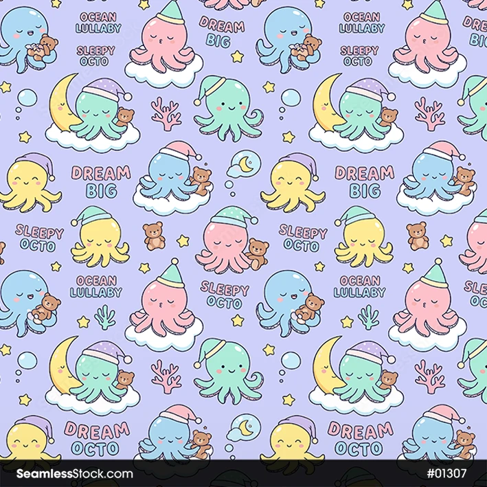 Cute octopuses seamless pattern made for kids products, fabrics, wallpapers and playful prints. Clean seamless repeat in high resolution, easy to use on clothing, accessories, stationery and home decor. Ideal for print on demand, digital projects and colorful collections with a friendly ocean vibe that feels fun, soft and visually engaging. 🐙💖