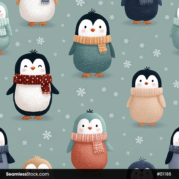 Waddle into a winter wonderland with this Cute Penguins And Snowflakes Seamless Pattern! 🐧❄️ This delightful design features adorable penguins playing amidst a flurry of delicate snowflakes, capturing the chilly charm of the Arctic. It is an ideal choice for winter apparel, holiday gift wrap, cozy blankets, and seasonal stationery. The cool blue tones and heartwarming characters create a festive and joyful atmosphere that brings a touch of frosty magic to your creative projects. 🌨️✨