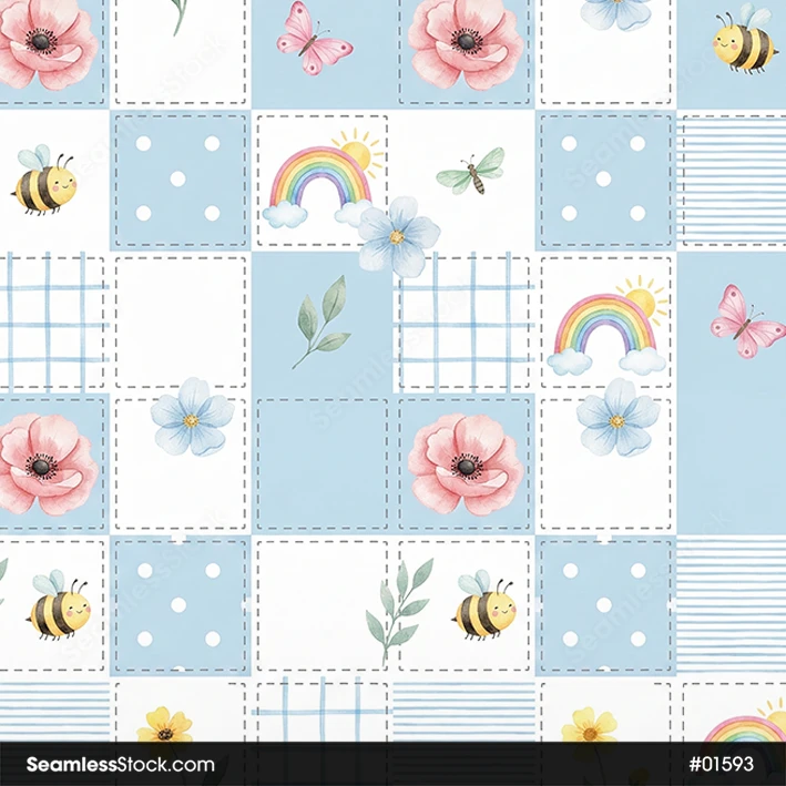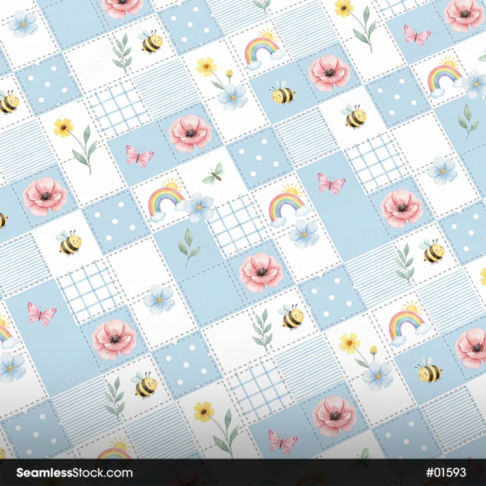 Use this Cute Plaid With Bees And Flowers Seamless Pattern For Girls Seamless Pattern for personal or business projects. Perfect for fabrics, stationery or wrapping paper. 🐝🌸