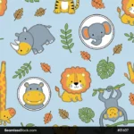 Cute Safari Animals Seamless Pattern For Boys