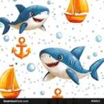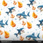 This Cute Sharks And Boats, Deep Sea Illustration Seamless Pattern is great for playful, aquatic designs that bring smiles and seaside charm. 🌊🐠🧸