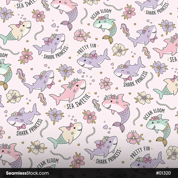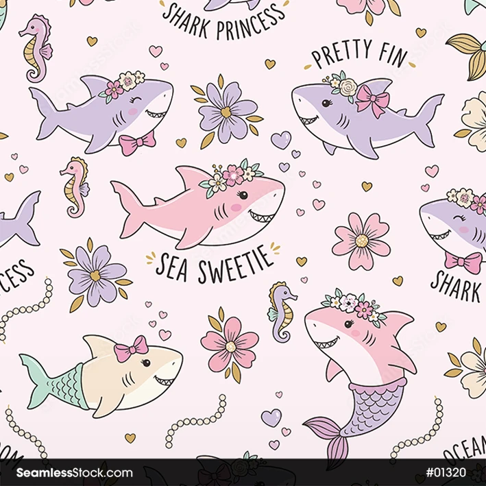 Cute sharks seamless pattern made for kids products, fabrics, wallpapers and playful prints. Clean seamless repeat in high resolution, easy to use on clothing, accessories, stationery and home decor. Ideal for print on demand, digital projects and colorful collections with a friendly ocean vibe that feels fun, soft and cheerful for young themes. 🦈💙
