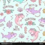 Create cheerful designs with this cute sharks seamless pattern, perfect for fabrics and wrapping paper, ideal for kids projects. 🦈💙