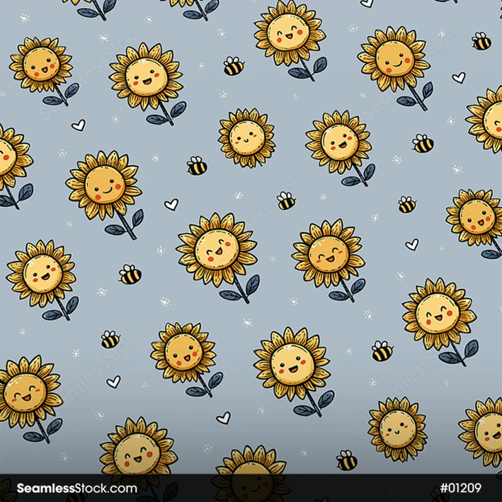 Add a burst of joy to your work with this Cute Sunflowers Seamless Pattern! Perfect for floral decor, bright fabrics, and whimsical seasonal accessories. 🌻💛