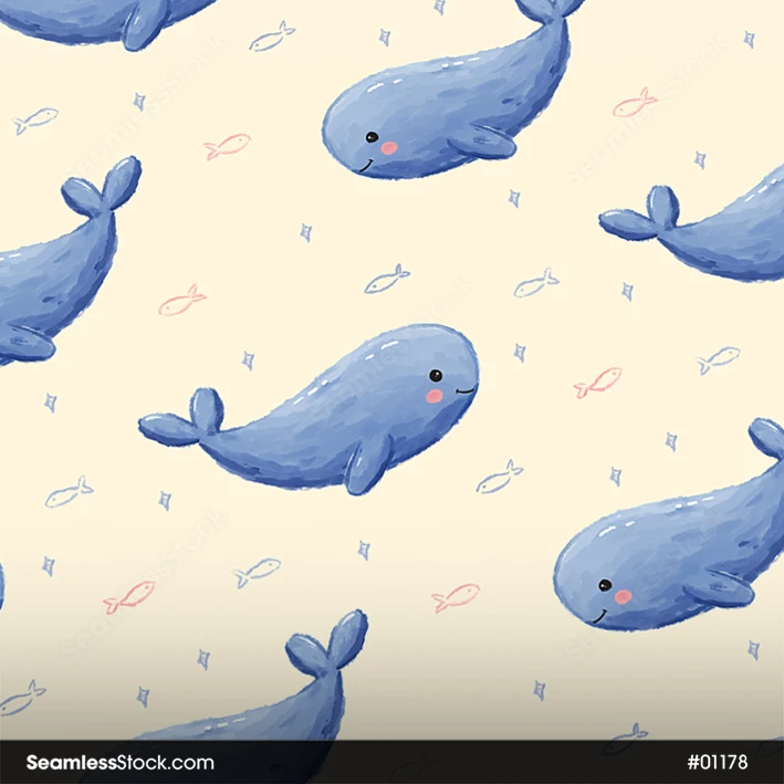 Explore the wonders of the ocean with this Cute Whales On Deep Sea Seamless Pattern! Perfect for nautical textiles, nursery wallpapers, and aquatic gift wrap. 🐳💙