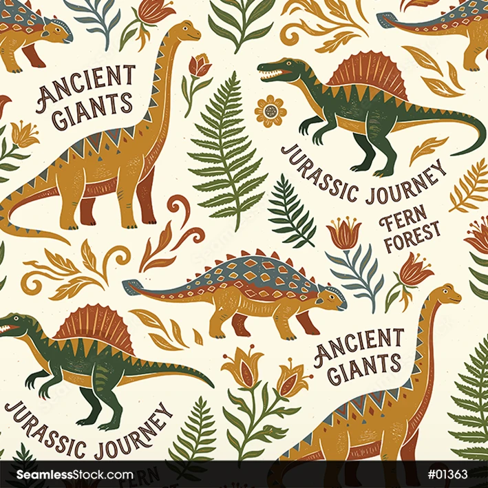 Create fun designs with this Dinosaurs And Leaves Seamless Pattern, combining dinosaurs leaves for kids products, fabrics, and cheerful digital projects. 🦖🍃