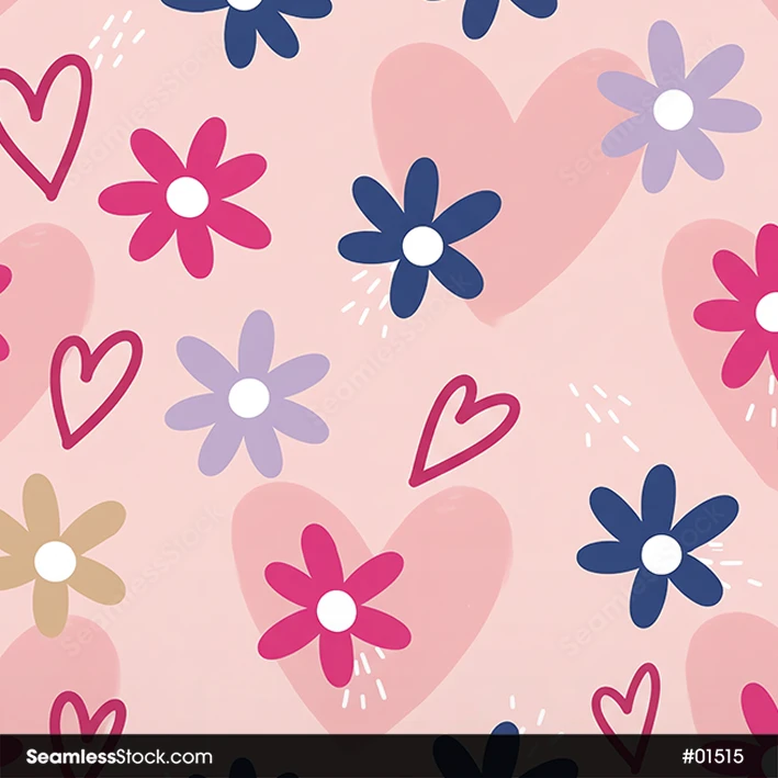 This Doodle Flowers And Hearts Seamless Pattern is great for fabrics, kids products, stationery, wallpapers, and cute print on demand designs. 🌸❤️