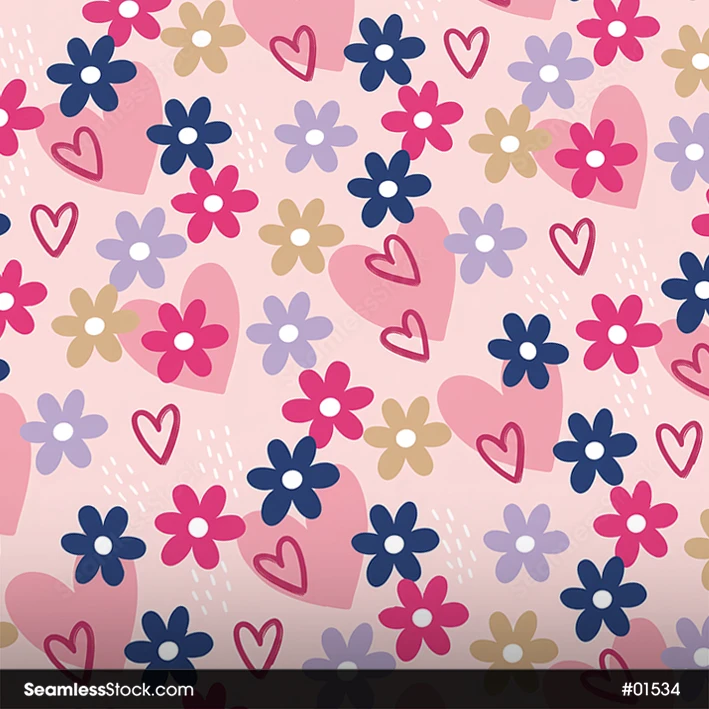 Use this Doodle Flowers And Hearts Seamless Pattern for personal or business projects. Perfect for fabrics, stationery or wrapping paper. 🌸❤️