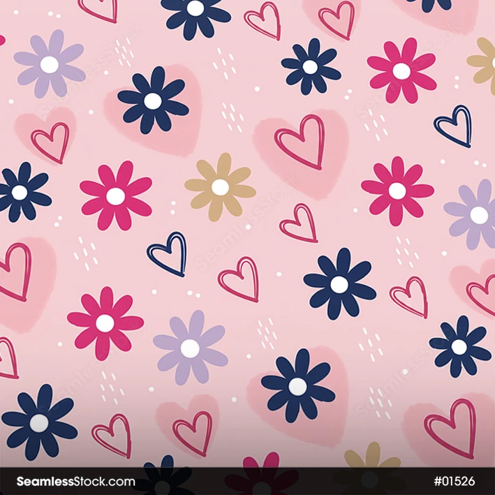 Use this Doodle Flowers And Hearts Seamless Pattern for personal or business projects. Perfect for fabrics, stationery or wrapping paper. 🌸❤️