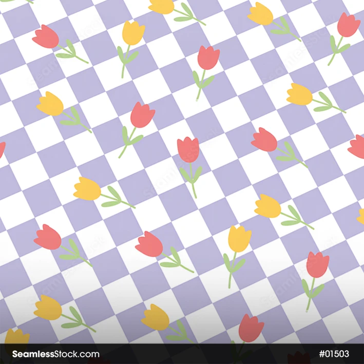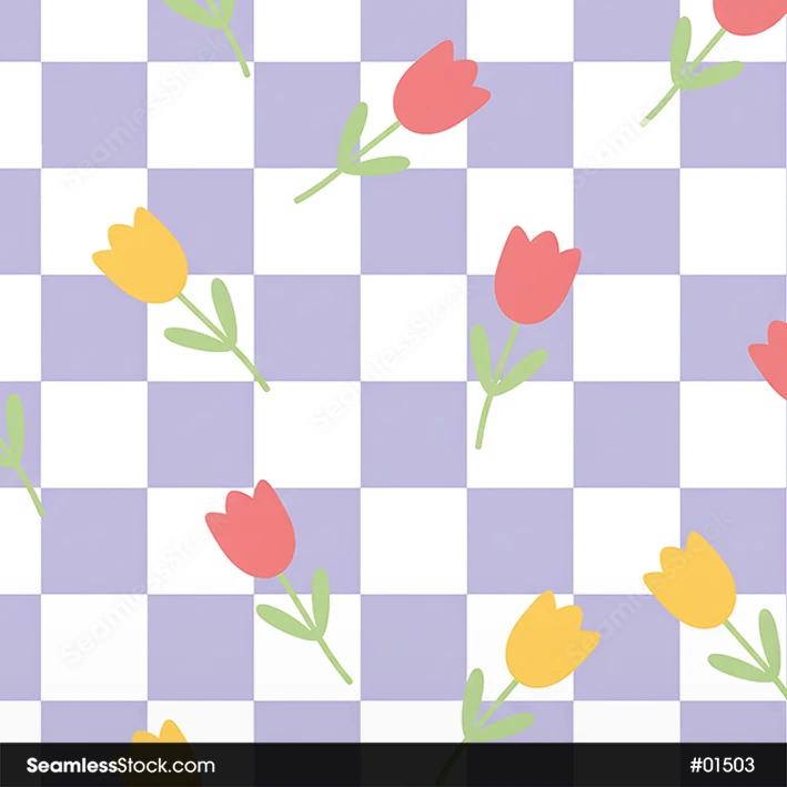 Doodle Flowers And Plaid Seamless Pattern with doodle flowers on a plaid background, ideal for fabrics, stationery, wallpapers, and cute surface design projects. 🌼✨