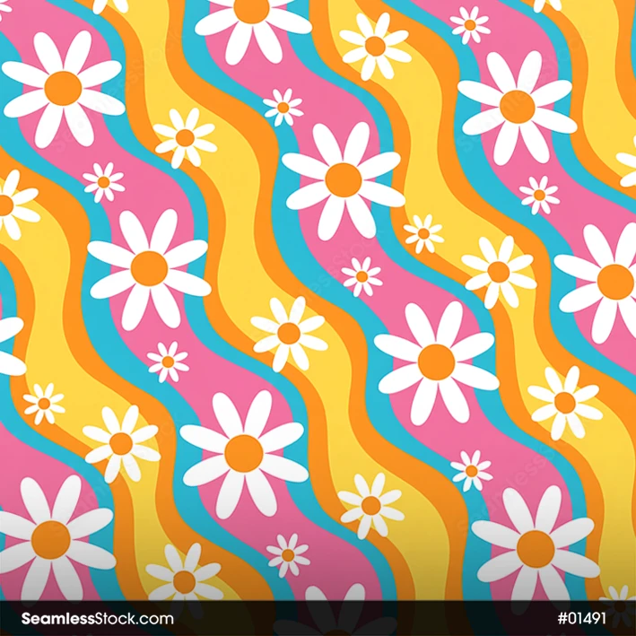 Doodle Flowers And Wavy Stripes Seamless Pattern with doodle flowers and wavy stripes in a seamless repeat, ideal for fabrics, wallpapers and fun decorative prints. 🌸〰️