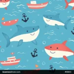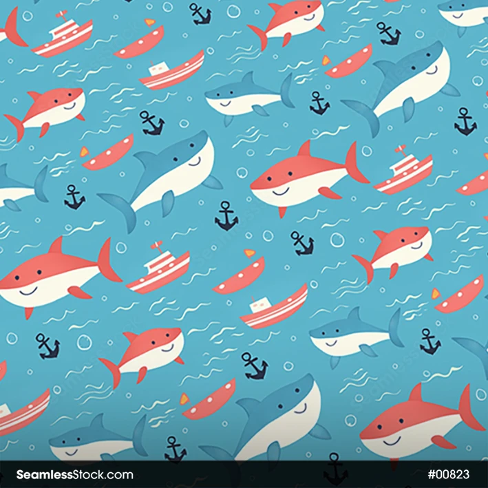 This Doodle Sharks, Waves And Boats, Deep Sea Illustration Seamless Pattern is perfect for sea-inspired creations full of fun, imagination, and doodle magic. 🌞🐟✏️