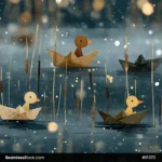 Ducks And Paper Boats Seamless Pattern
