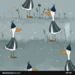 Ducks With Winter Hat Seamless Pattern