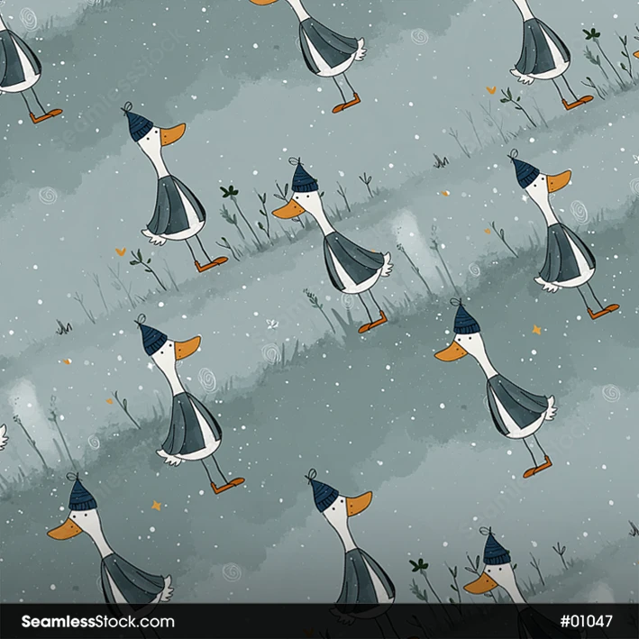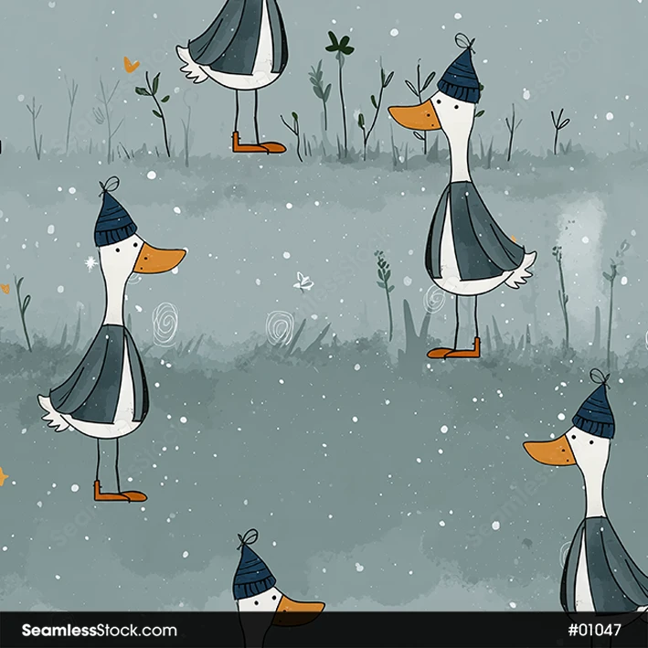 Warm up your style with this ducks with winter hat seamless pattern! 🦆❄️ Ideal for winter-themed crafts and joyful designs.