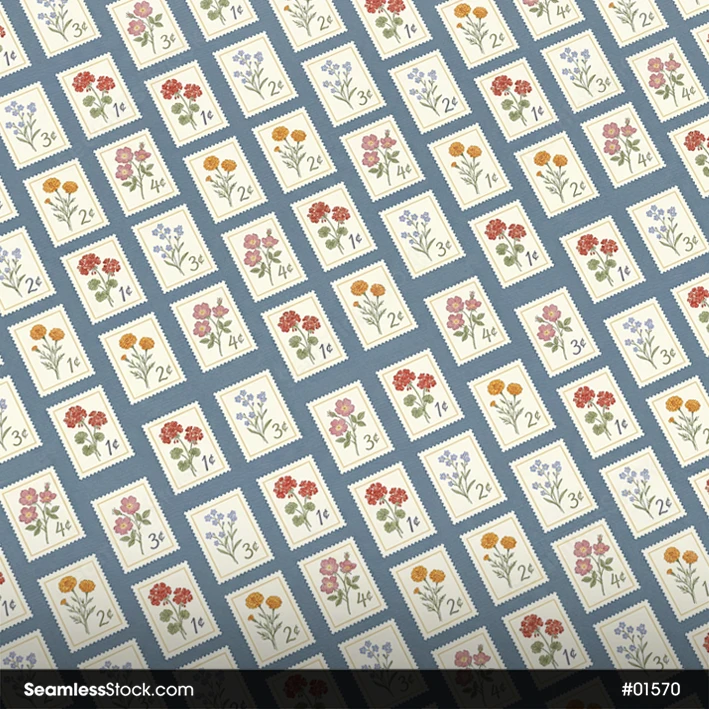 Use this Floral Postage Stamps Seamless Pattern for personal or business projects. Perfect for fabrics, stationery or wrapping paper. 🌸📮