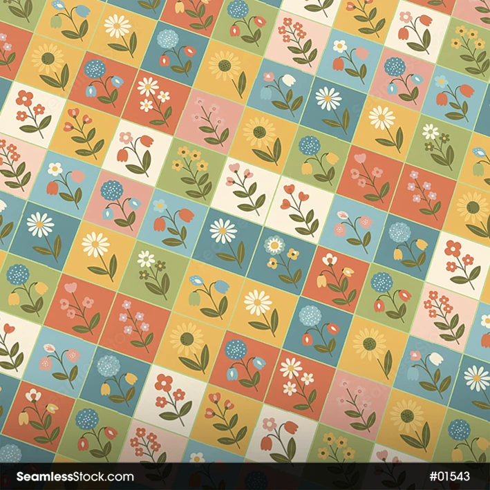 Use this Flowers And Patchwork Seamless Pattern for personal or business projects. Perfect for fabrics, stationery or wrapping paper. 🌸🧵