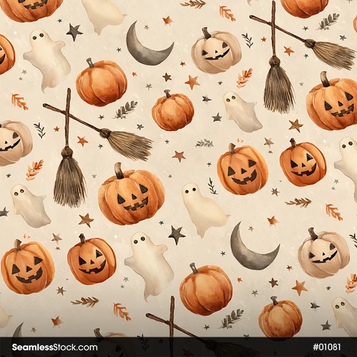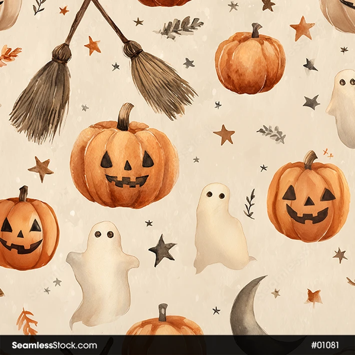 Bring spooky fun to your creations with this Halloween pumpkins and ghosts seamless pattern! 🎃👻 Playful pumpkins and friendly ghosts fill the scene with festive charm, perfect for fabrics, stationery, party decor, or digital projects. The lively design adds a magical Halloween atmosphere.
