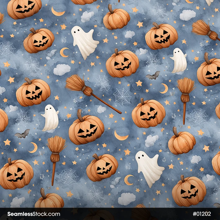 Set the holiday mood with this Halloween Pumpkins Seamless Pattern! Ideal for festive gift wrap, spooky fabrics, and autumn home decor. 🎃🍂