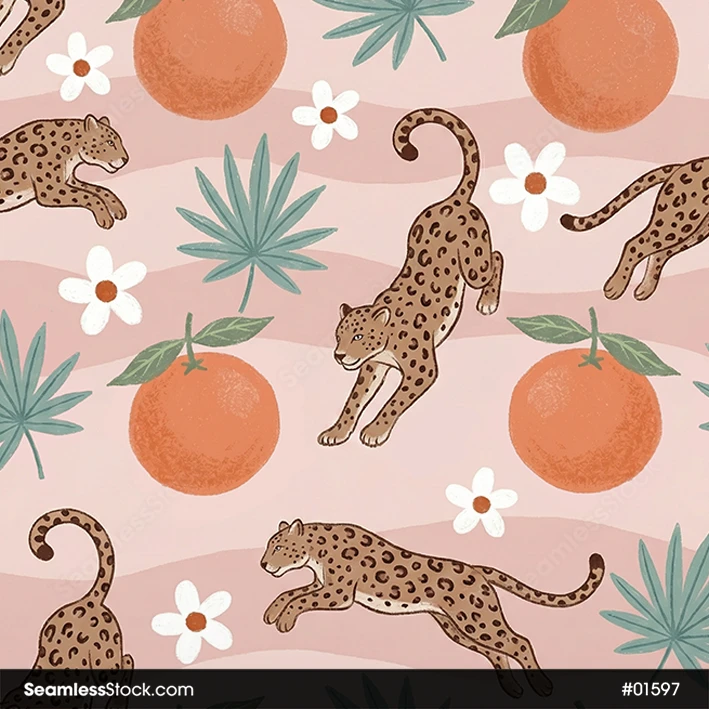 Jaguars And Grapefruits Seamless Pattern For Adult