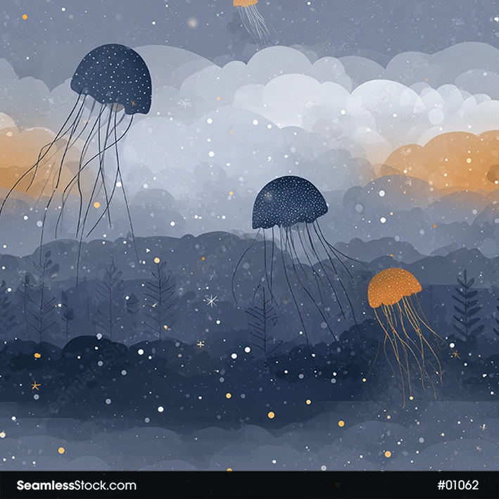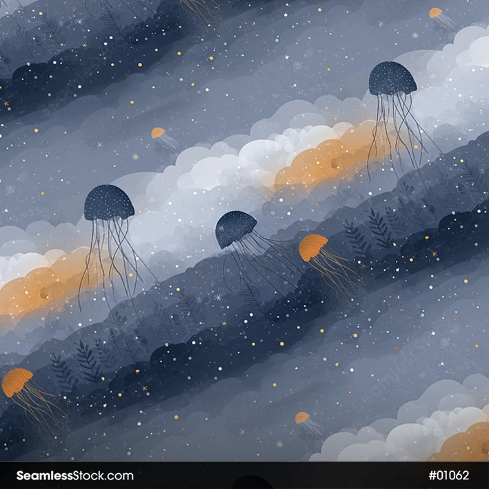Create dreamy underwater projects with this jellyfish on deep sea seamless pattern! 🌌✨ Ideal for textiles, stationery, and ocean-themed artworks.