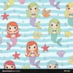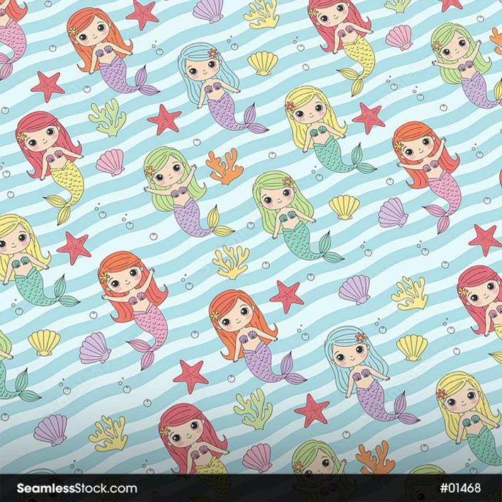 Fun and ocean themed, this mermaids on wavy background seamless pattern is perfect for children decor, textiles, stationery, and colorful creative designs. 🐚🌊✨
