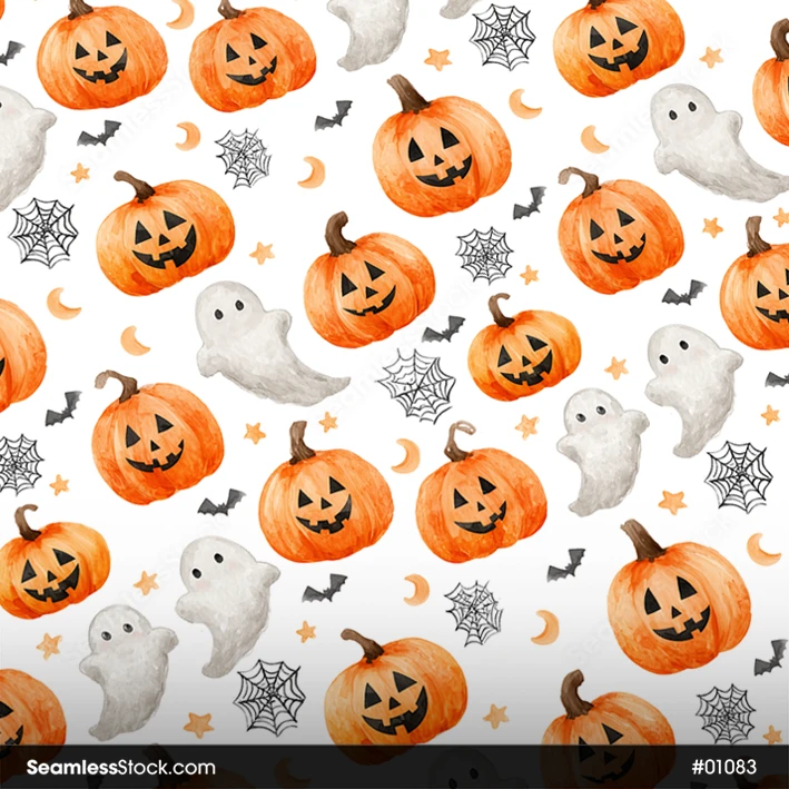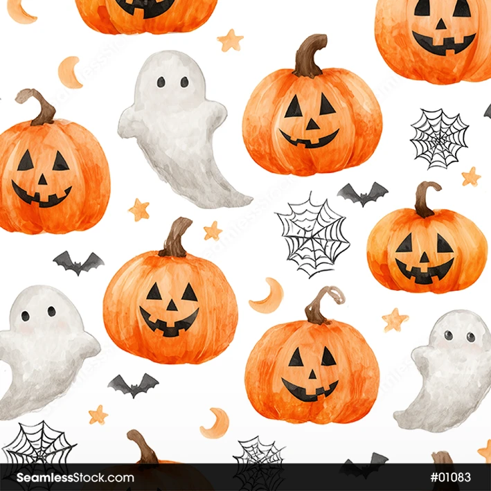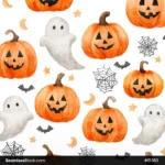 Bring your designs to life with this Pumpkins And Ghost Halloween Style Seamless Pattern! 🎃👻 Ideal for digital artwork of Halloween night.