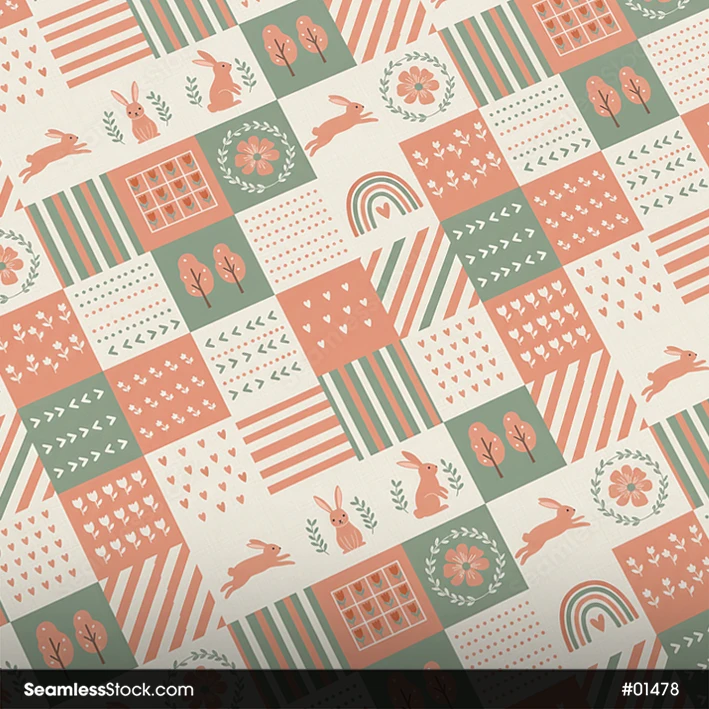 This Rabbits And Patchwork Seamless Pattern features cute rabbits combined with patchwork style shapes, creating a cozy and playful repeat perfect for fabrics, kids apparel, quilting projects, wrapping paper and digital backgrounds. The rabbits and patchwork layout repeats smoothly edge to edge and works great on large surfaces. 🐰🧵