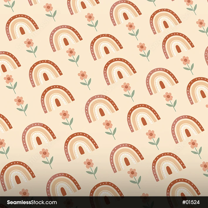 Use this Rainbows And Flowers Seamless Pattern for personal or business projects. Perfect for fabrics, stationery or wrapping paper. 🌈🌸