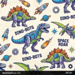 This Robot Dinosaurs Seamless Pattern features futuristic robotic dinos in a clean repeating layout, perfect for fabrics, wallpapers, kids products, tech themes, and digital projects. The robot dinosaurs design mixes sci-fi and fun, adding energy and creativity to prints, merch, stationery, and bold visual compositions. 🤖🦖