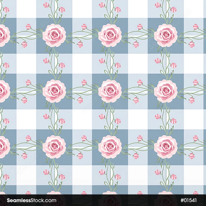 Use this Roses And Plaid Seamless Pattern for personal or business projects. Perfect for fabrics, stationery or wrapping paper. 🌹🧵