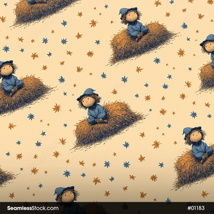 Capture the harvest vibe with this Sitting Scarecrows Seamless Pattern! Great for country quilts and cozy fall stationery designs. 🍂🌻