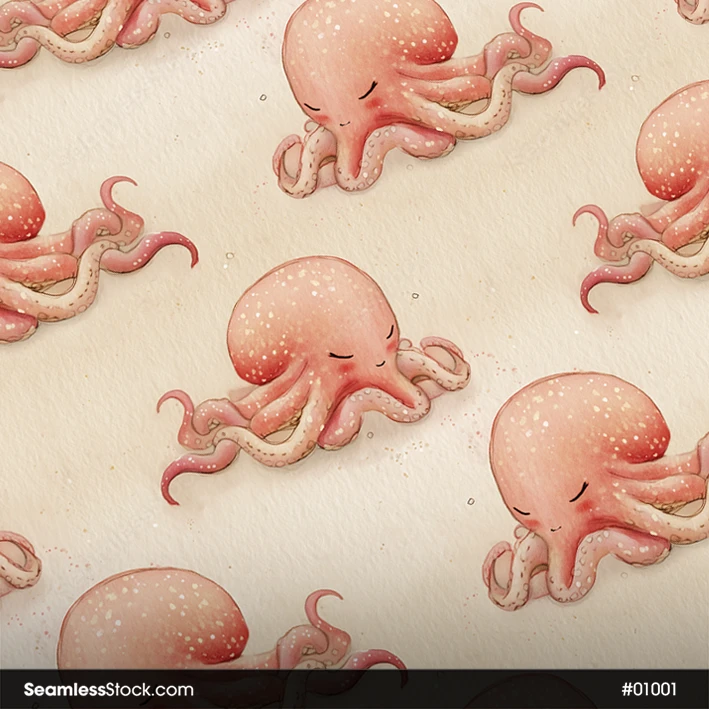 Create sweet and cozy designs with this sleeping octocups seamless pattern! 🐙☁️ Ideal for charming and gentle creations.