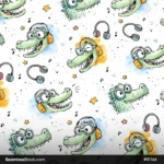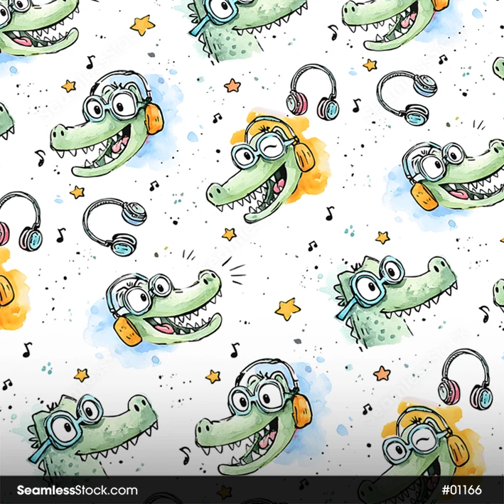 Add a lively modern touch to your work with this Watercolor Alligators On Headphones Seamless Pattern! 🐊🎧 Ideal for wrapping paper, nursery decor, and digital artwork full of personality and color.