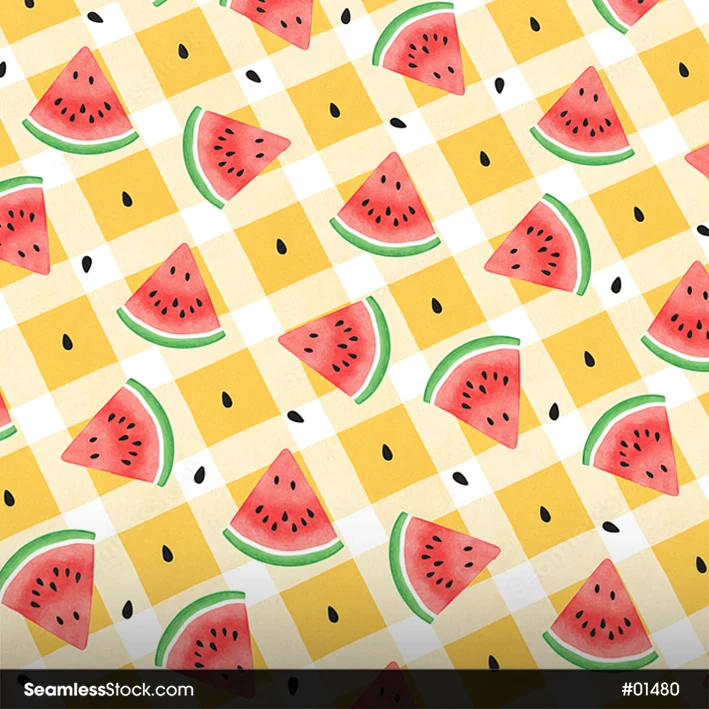 This Watermelons On Plaid Background Seamless Pattern combines juicy watermelons with a classic plaid background, creating a fresh and playful look for fabrics, apparel, wallpapers, packaging and summer themed projects. The watermelons repeat seamlessly with clean alignment, keeping the plaid background consistent across large surfaces. 🍉🟥