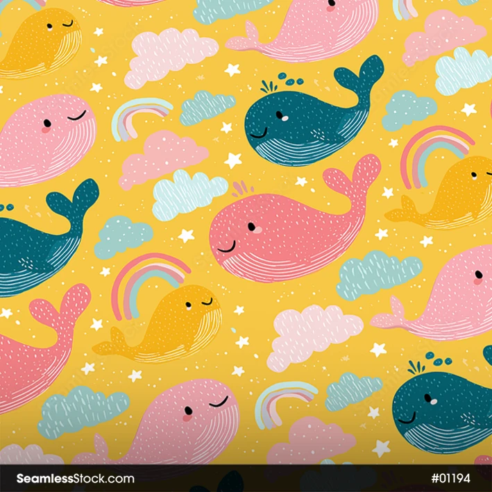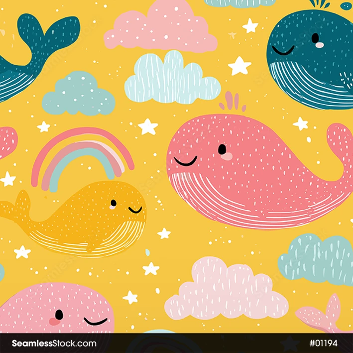 Add a splash of heavenly charm to your work with this Whales and Clouds and Stars Seamless Pattern! Perfect for dreamy accessories and magical stationery. ☁️⭐